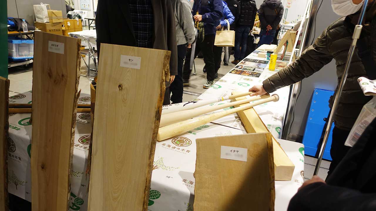 バットや道産木材の長幅板(販売もしています)に興味を持たれる方も多かったです!