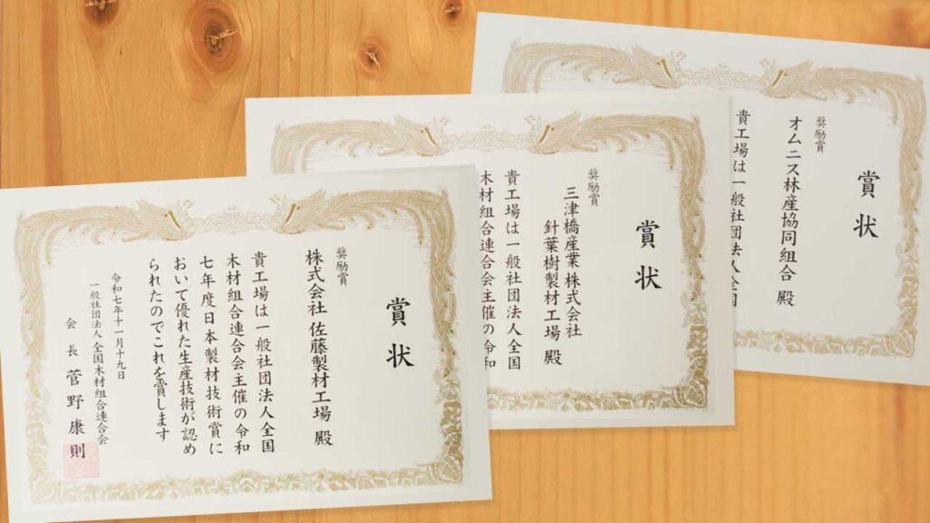 一般社団法人全国木材組合連合会が主催する「令和7年度 日本製材技術賞」において、
