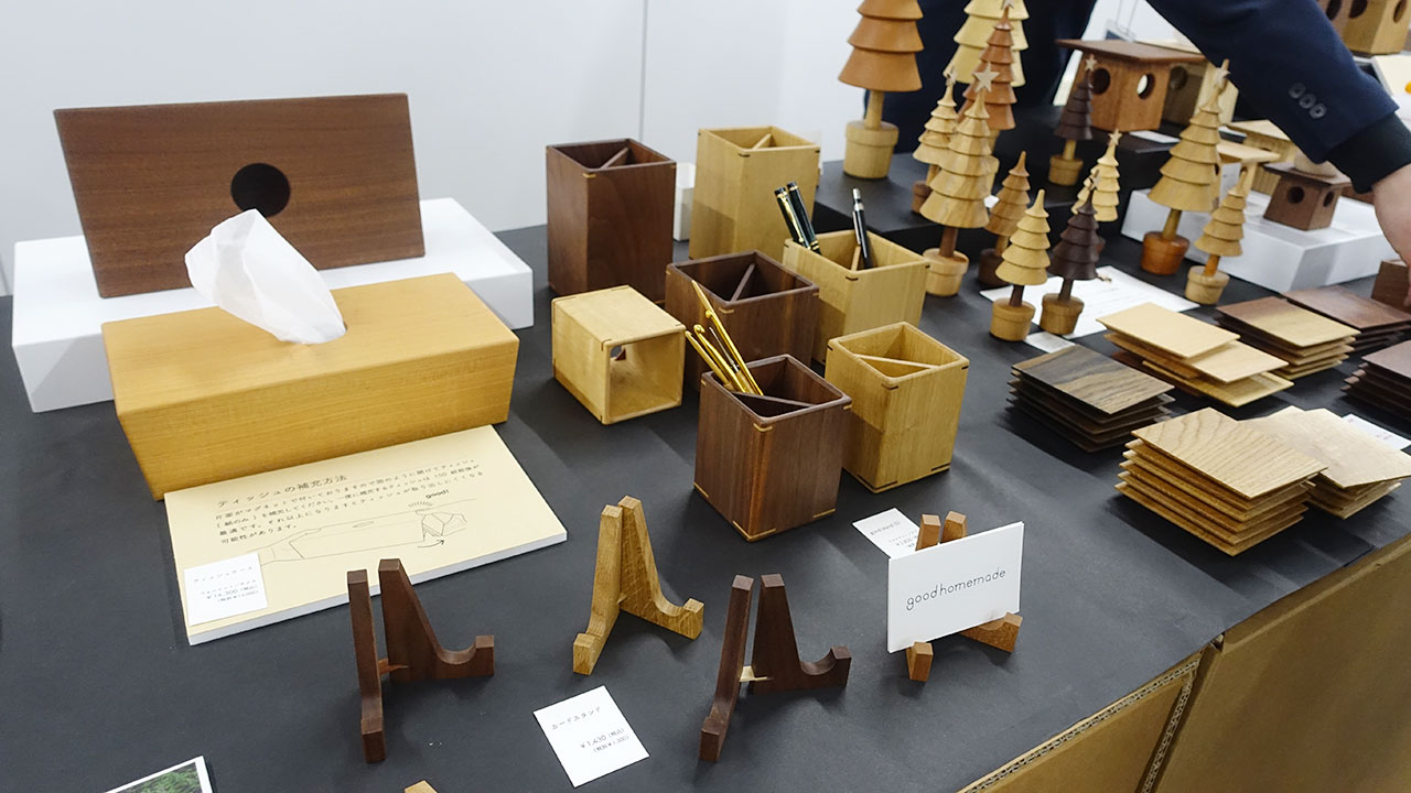おもちゃ、食器、端材、WPC床材など、雑貨から建材まで多彩な出展がありました。