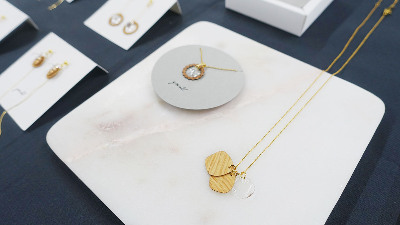 文具やお皿、家具にアクセサリー、からまつ無垢構造材や道産複合フローリング。